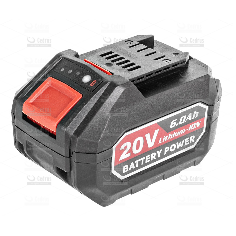 Bateria Cedrus Power + o pojemności 6Ah z ogniwami litowo-jonowymi służy do zasilania narzędzi oraz urządzeń z serii Cedrus Power +. Na obudowie posiada 3 ledowe wskaźniki naładowania.