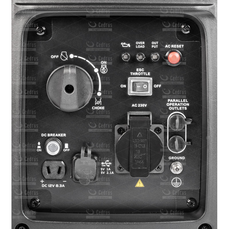 Agregat inwerterowy Cedrus IN2000R posiada system automatycznej regulacji obrotów w zależności od obciążenia. Dzięki sinusoidalnemu wykresowi napięcia idealnie nadaje się do zasilania urządzeń czułych na wahania napięcia.