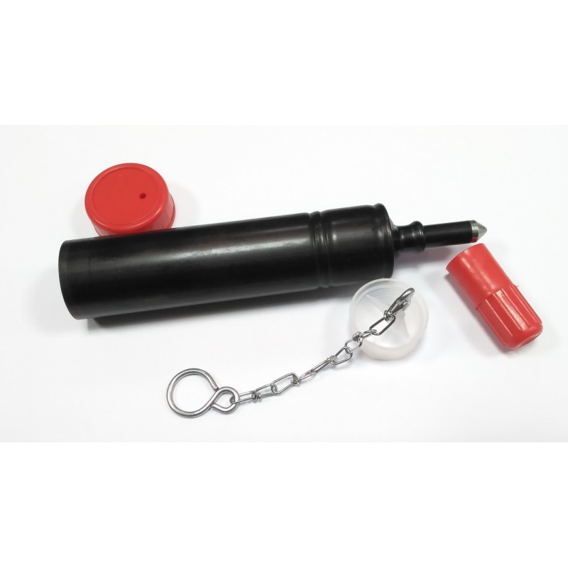 Całkowicie metalowa smarowniczka do smarowania końcówek prowadnic pił łańcuchowych.